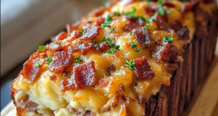 Creamy mashed potatoes baked into a golden loaf, packed with savory sausage, crispy bacon, melted cheddar, and buttery richness. Comfort food at its finest! Kcal: ~520 per serving (Creamy • Savory • Crispy top • Ultra comforting) Serves: 6 Kcal: ~520 per serving (Creamy • Savory • Crispy top • …