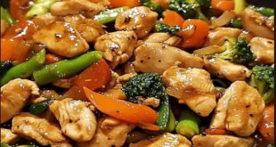 Juicy chicken, crunchy vegetables, and a glossy garlic-soy glaze — fast, flavorful, and impossible to resist. Ready in minutes! 𝐊𝐜𝐚𝐥: ~385 per serving 𝐒𝐞𝐫𝐯𝐞𝐬: 2 𝐓𝐨𝐭𝐚𝐥 𝐓𝐢𝐦𝐞: 15–20 min 𝐈𝐧𝐠𝐫𝐞𝐝𝐢𝐞𝐧𝐭𝐬 (je garde tout ton contenu, sans rien oublier) Chicken & Veggies • 1 lb chicken breast, thinly sliced • 1 red …
