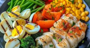 A light, colorful, protein-packed plate featuring grilled fish and vibrant veggies — simple, clean, and perfect for a balanced meal. 🔥 𝐊𝐜𝐚𝐥: ~420 per serving (Healthy • Low-carb • High-protein) 🍽️ 𝐒𝐞𝐫𝐯𝐞𝐬: 1 ⏱️ 𝐓𝐨𝐭𝐚𝐥 𝐓𝐢𝐦𝐞: 20–25 min 🔥 𝐊𝐜𝐚𝐥: ~420 per serving (Healthy • Low-carb • High-protein) 📝 𝐈𝐧𝐠𝐫𝐞𝐝𝐢𝐞𝐧𝐭𝐬 …
